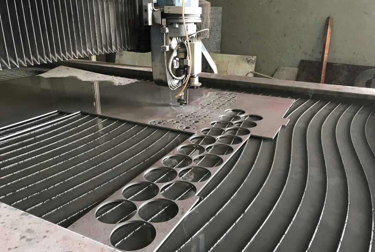 Découpe de pièce sur mesure au jet d'eau et abrasif (Machine à jet d'eau 3000 bars pouvant aller jusqu’à 15 cm d’épaisseur suivant plan / croquis / image / fichier DXF ou XPF.